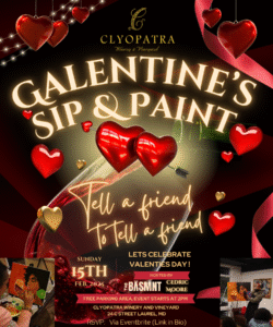 Celebrate Galentine’s Day with us at Clyopatra Winery for Sip & Paint hosted in collaboration with The BASMNT and Cedric Moore. Come sip, paint, and bring your people.