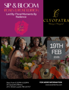 Join us for Sip & Bloom: Roses & Rosé Edition at Clyopatra Winery, led by Floral Moments by Radience. A night of florals, vibes, and wine perfect for a fun midweek reset.